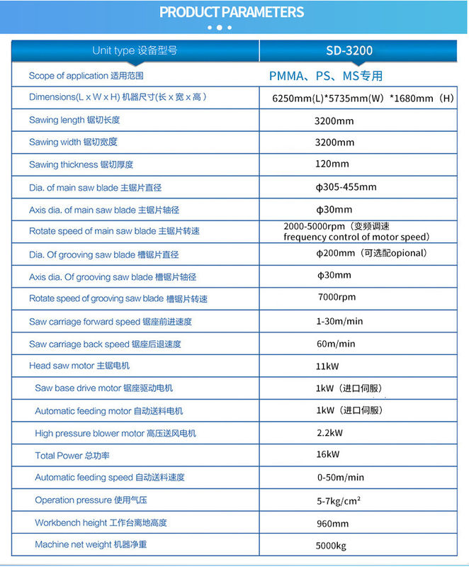 7. O trilho guia do assento da serra adota marca importada, a retidão da serragem< 0,06 mm, com alta precisão e carga pesada, o controle servo Panasonic é especialmente usado para PMMA, MS, PS, PLEXIGLASS, ACRÍLICO, PLÁSTICO.